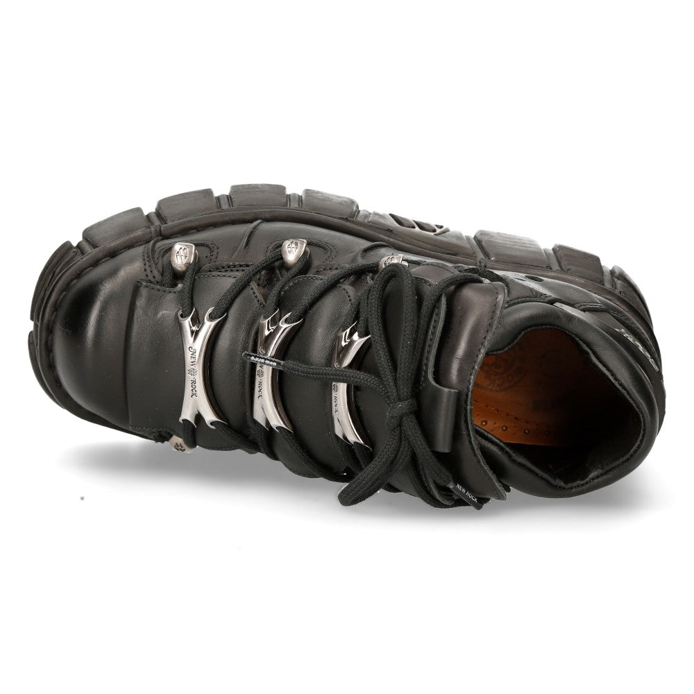 Unleash your inner rocker with the 106-C66. This ankle boot from the METALLIC collection boasts genuine leather and a fusion of gothic and metallic styles, delivering New Rock's signature power and finishing.