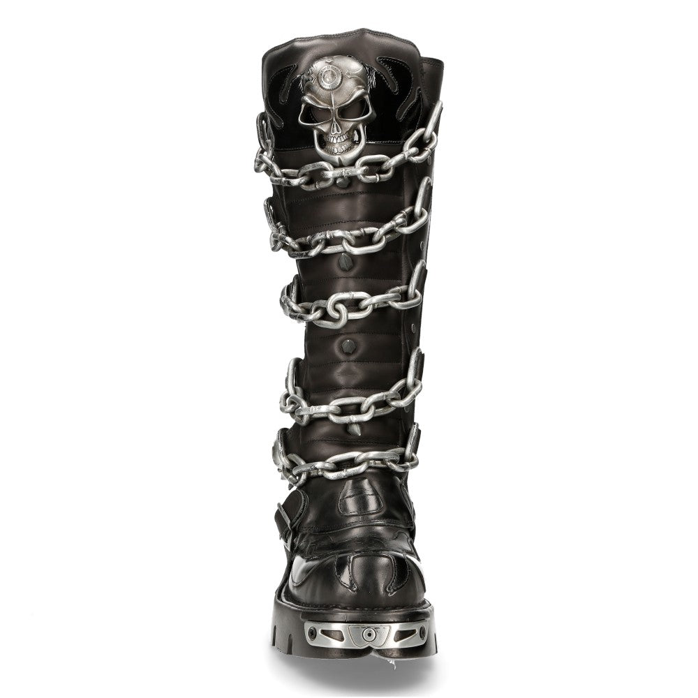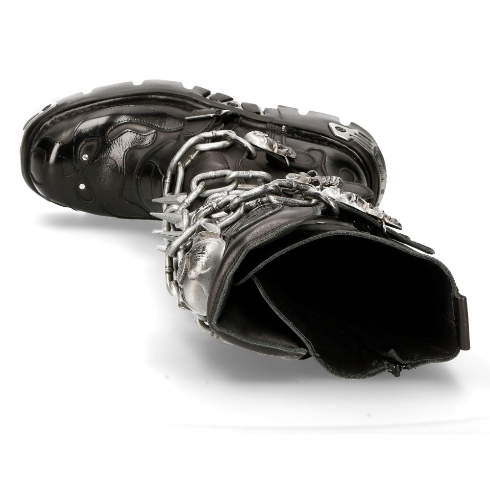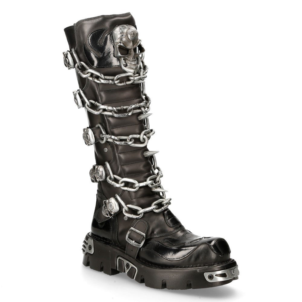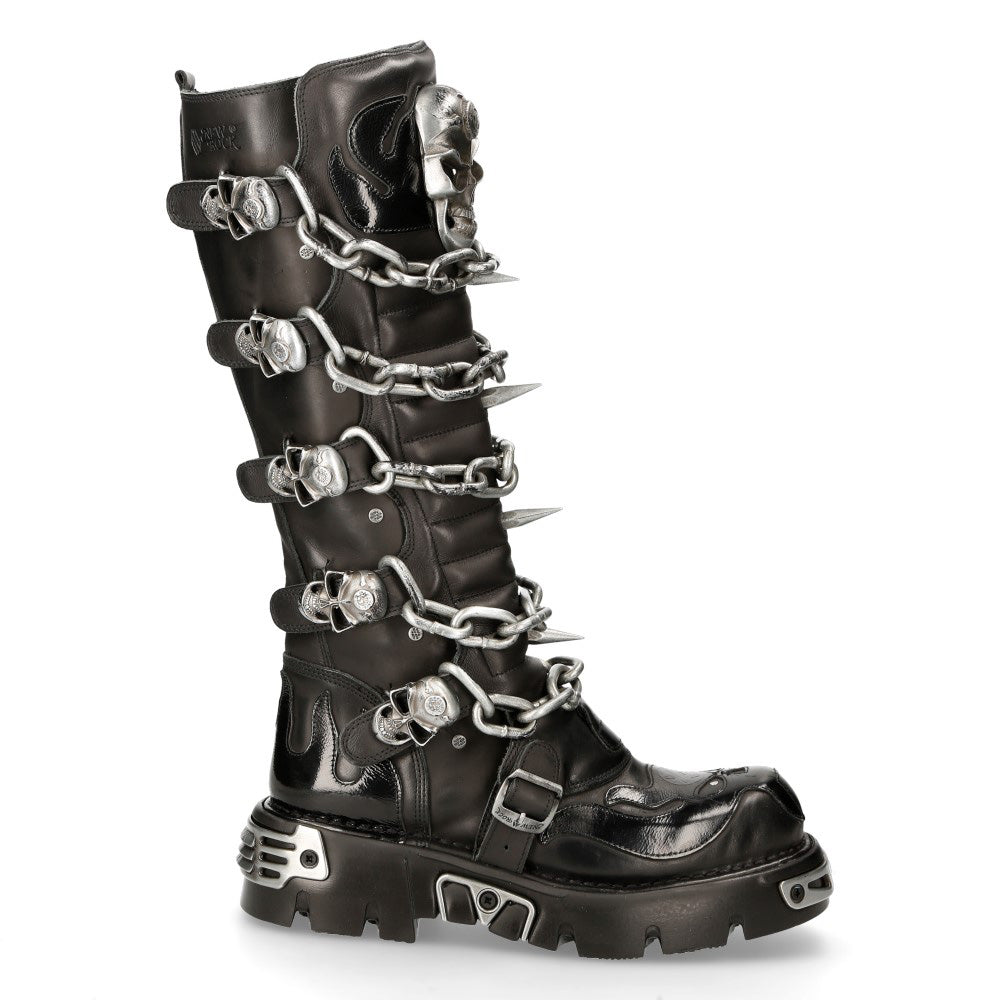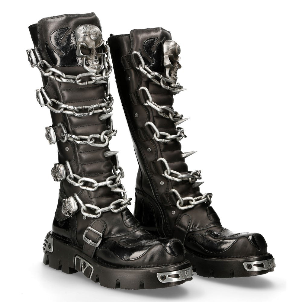 The M-718F-C2 from the METALLIC collection is a high boot made of genuine leather. It combines new punk and rock design with the power and finishing of an original New Rock, blending gothic and metallic styles. m-718f-c2)