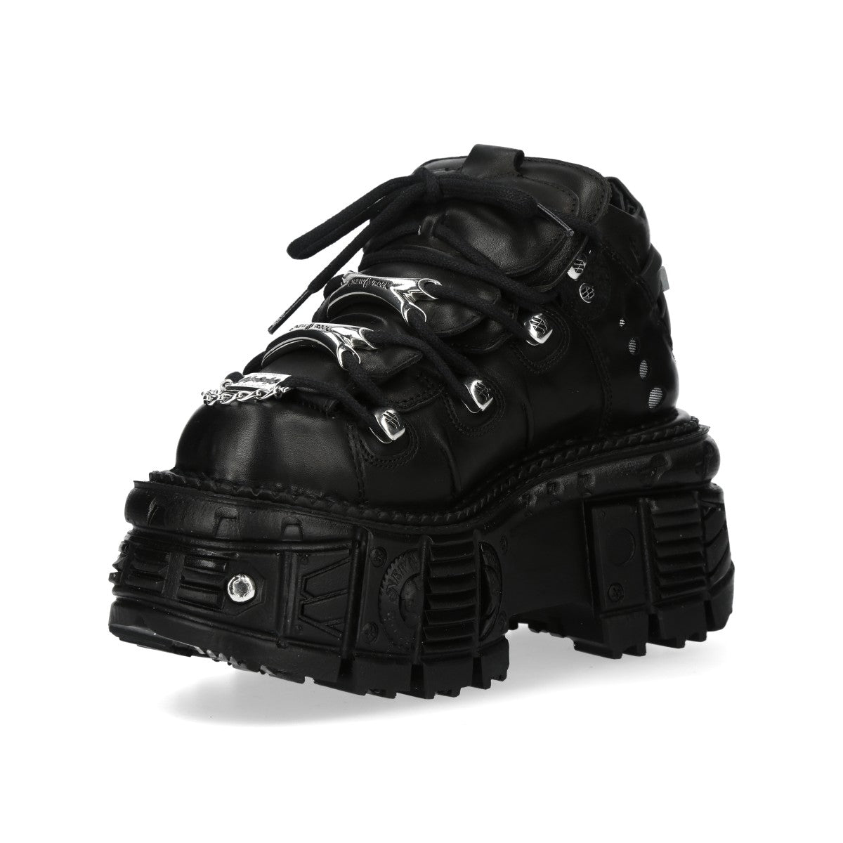 The New Rock - Metallic Ankle Boot M-TANK106-C5 from New Rock’s METALLIC Collection is handcrafted in Spain with genuine leather. It features a chunky platform sole, lace-up front, and timeless punk-rock flair for unisex wear.